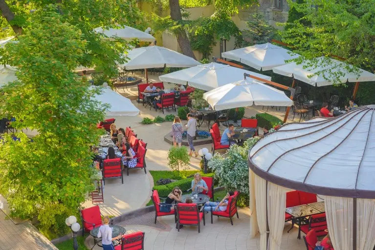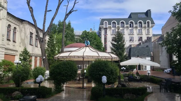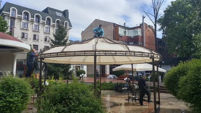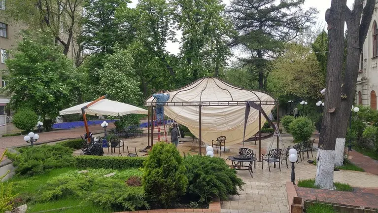 Во всех конструкциях (зонты, круглые шатры) используется ткань монако.