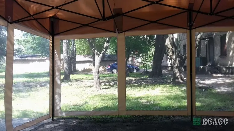 Ниже на фото хотим обратить особое внимание на то как выполнены стенки из москитной сетки и их стыковка между собой с помощью липучки.