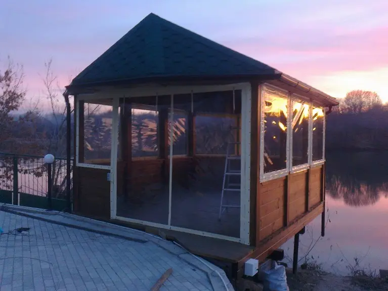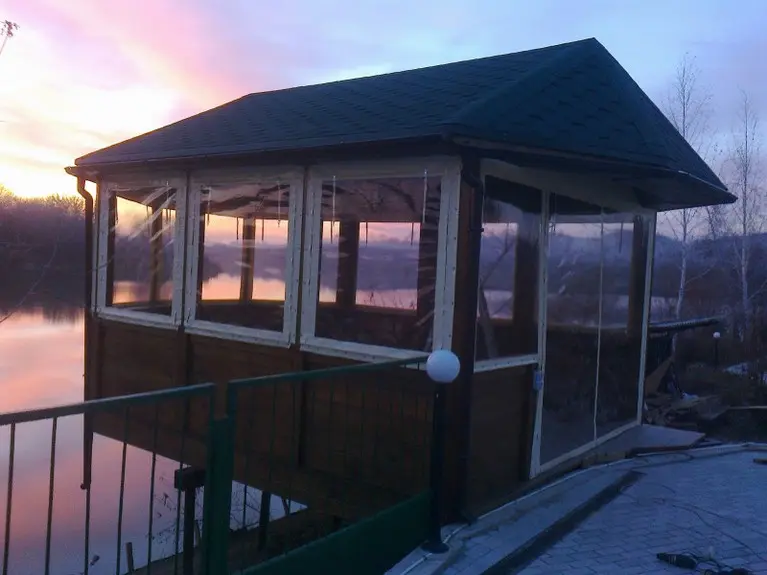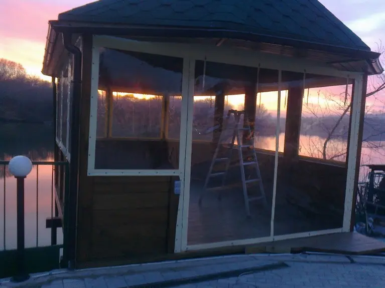 Беседка с прозрачными ПВХ окнами возле озера. ВелесОпубликован от Велес вход Прозрачные стенки ПВХ · пятница 22 май 2015Tags: беседка, пвх, окна, прозрачные, стенки