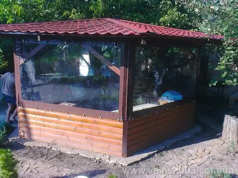 Такие окна помогут сделать вашу беседку более уютной и защитят от непогоды.