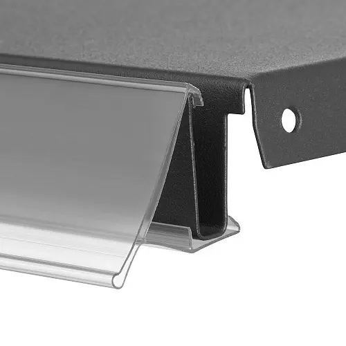 - Профильные ценникодержатели: они монтируются на профиль полки с использованием специальной защелки, обеспечивающей надежное крепление и легкость демонтажа.