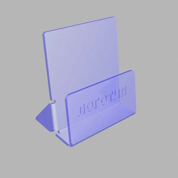 Подставка из прозрачного оргстекла используется для размещения двух комплектов буклетов формата А4. В нижней части подставки расположен карман для визиток, либо любых других промо-материалов