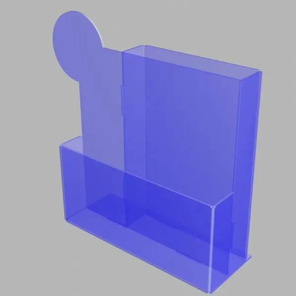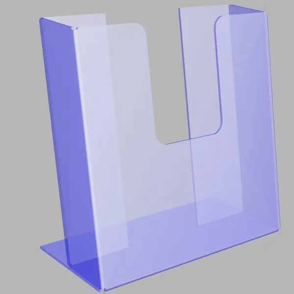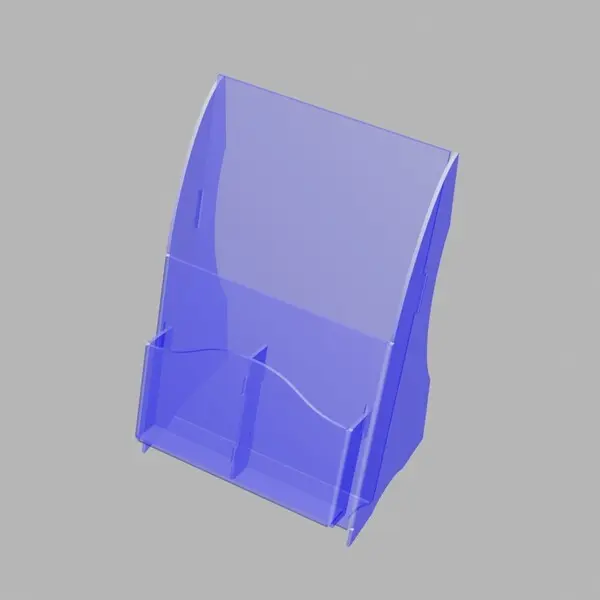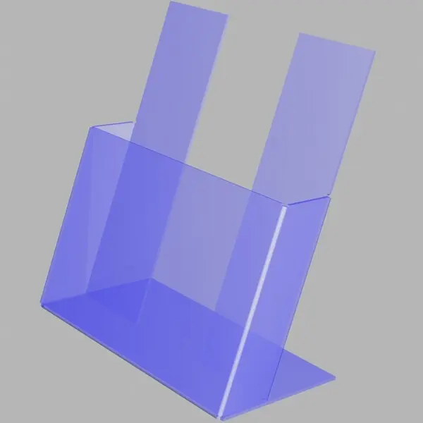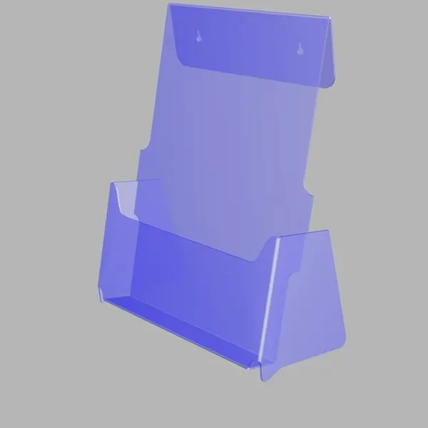 Подставка из прозрачного акрила используется для размещения буклетов компании. Может использоваться как настольный вариант расположения, так и настенный.