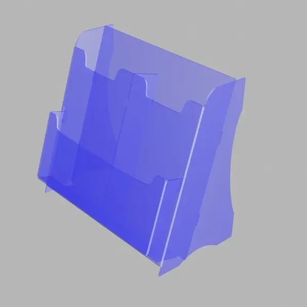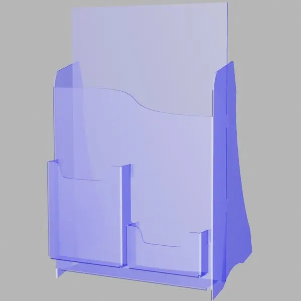 Настольная подставка из оргстекла на несколько карманов позволяет в ограниченном пространстве демонстрировать большое количество разнообразных рекламных буклетов и брошюр.