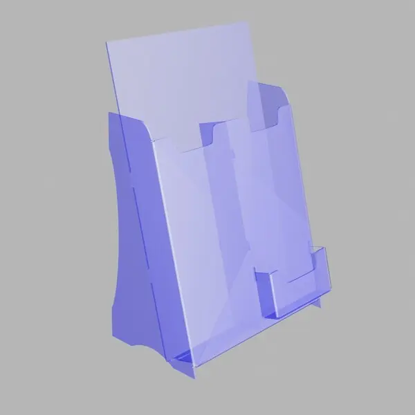Подставка из прозрачного оргстекла используется для размещения четырех комплектов буклетов формата А5.
