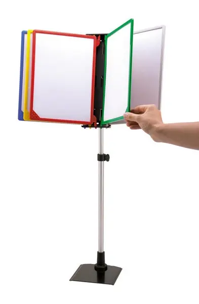 Настольная инфосистема „Infosign” Состоит из 5 рамок формата А4, корпуса и трубки, которая раздвигается от 400 до 700 мм.