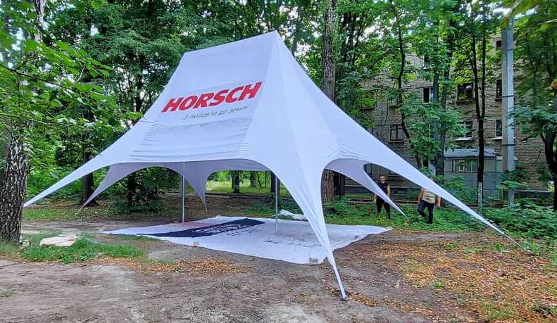 Брендирование шатров: изготовление тентов с логотипом под заказ