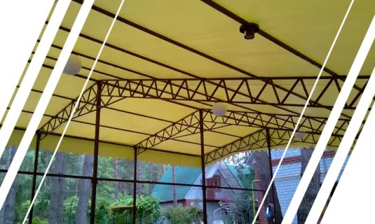 - Каркасно-тентовые системы: изготовление тентов для кафе, ресторанов, навесов и альтанок.