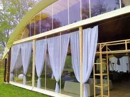 Тентовые шторы и мягкие окна из водонепроницаемой ткани ПВХ — это идеальное решение для полной защиты от природных капризов, таких как ветер, дождь и снег. Установка обогревательных приборов в нашей беседке, снабженной этими защитными шторами , не только сохраняет комфортную температуру внутри, но и удлиняет возможность наслаждаться отдыхом в помещении даже в холодное время года.
